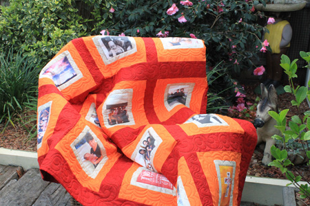 Our Photo Quilts are all handmade using 100% cotton fabrics, high grade wadding, professional long arm quilting of your quilt and your photo’s are printed on to the highest quality printable fabric which are sewn into the quilt. This all ensures the longevity of your Photo Quilt.