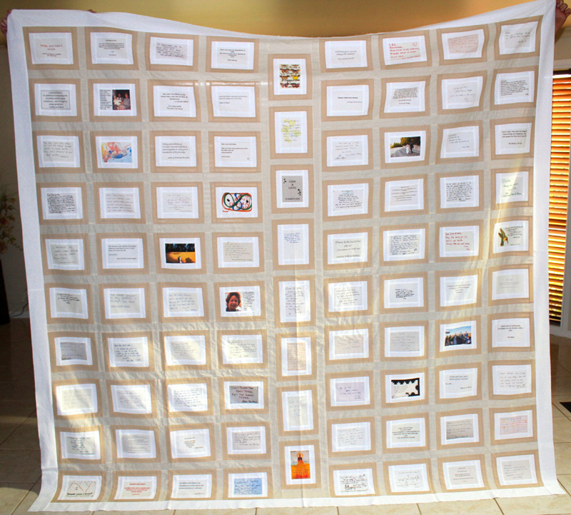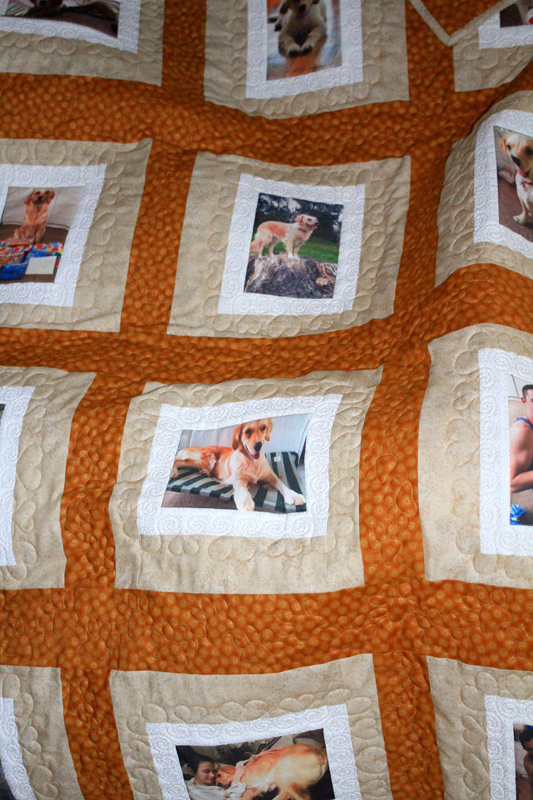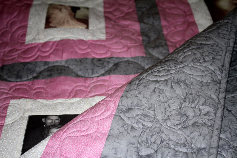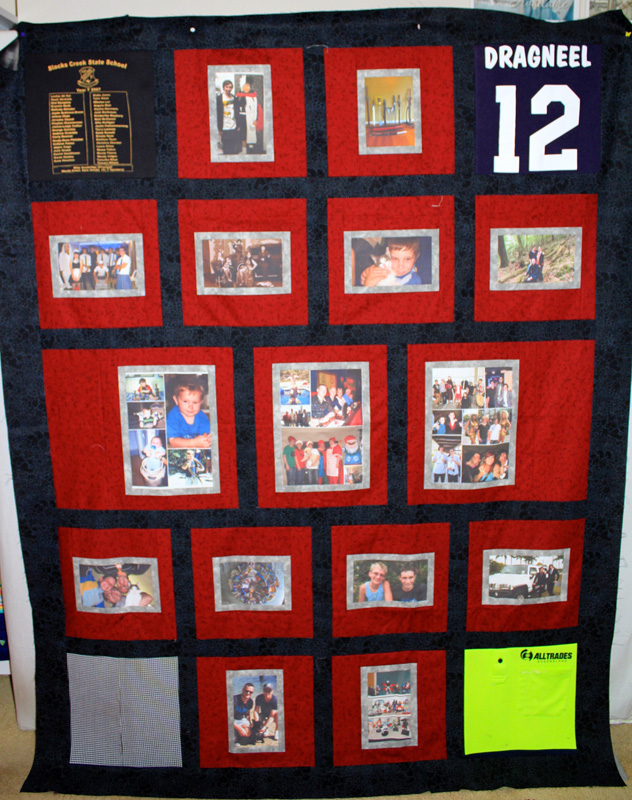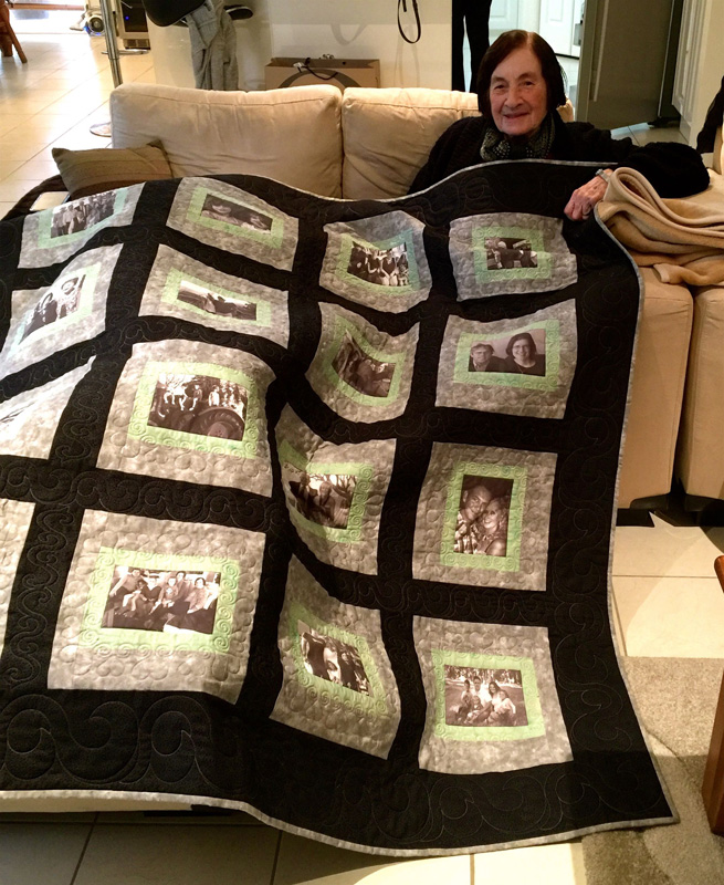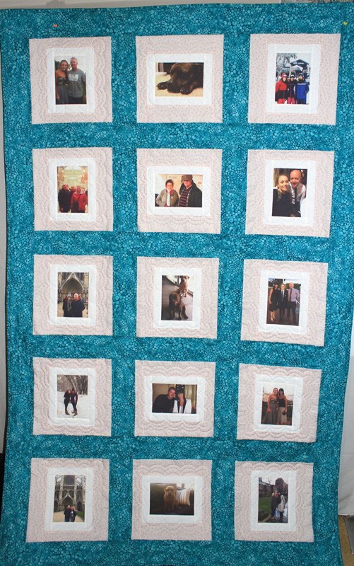 We create your special photos into family treasure quilts that will last a lifetime and these can then be passed on from generation to generation – they will become treasured family heirlooms. Each Photo Memory Quilt we make is truly unique. We aim to work with you on an individual basis to ensure that your choice of fabric and layout of your design compliments your choice of photos. Photo Memory Quilts by QUILTING MEMORIES are made for remembrances and celebrations of lives of loved ones, loved events and any other memorable occasions, mostly connected with family, birthdays, weddings, births, deaths, anniversaries and don’t forget your family pet – they can be included as well.